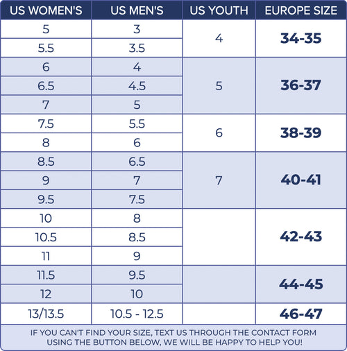 | Foot Length | Women (US) | Men (US) | Europe Size |