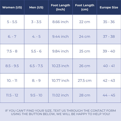 | Foot Length | Women (US) | Men (US) | Europe Size |